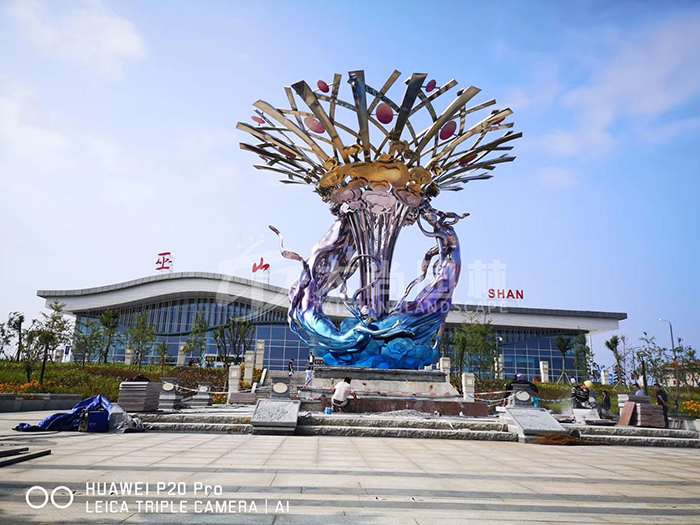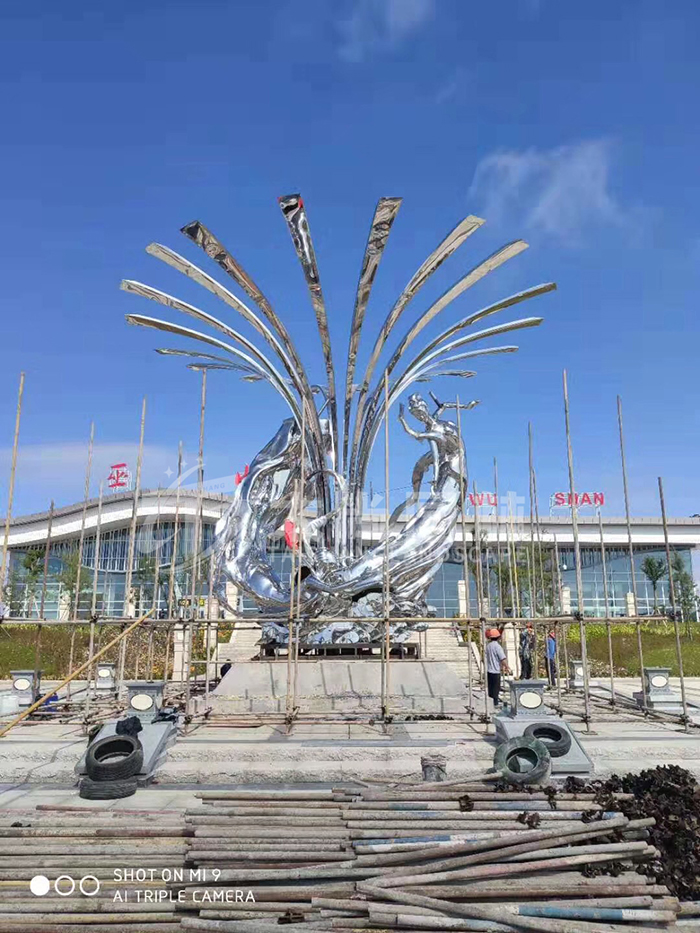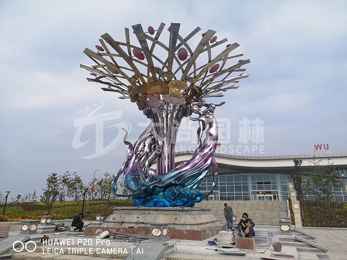 仙女雕塑以漂亮的服飾、優(yōu)美的飄姿展示滿懷深情、喜迎中外賓客的精、氣、神